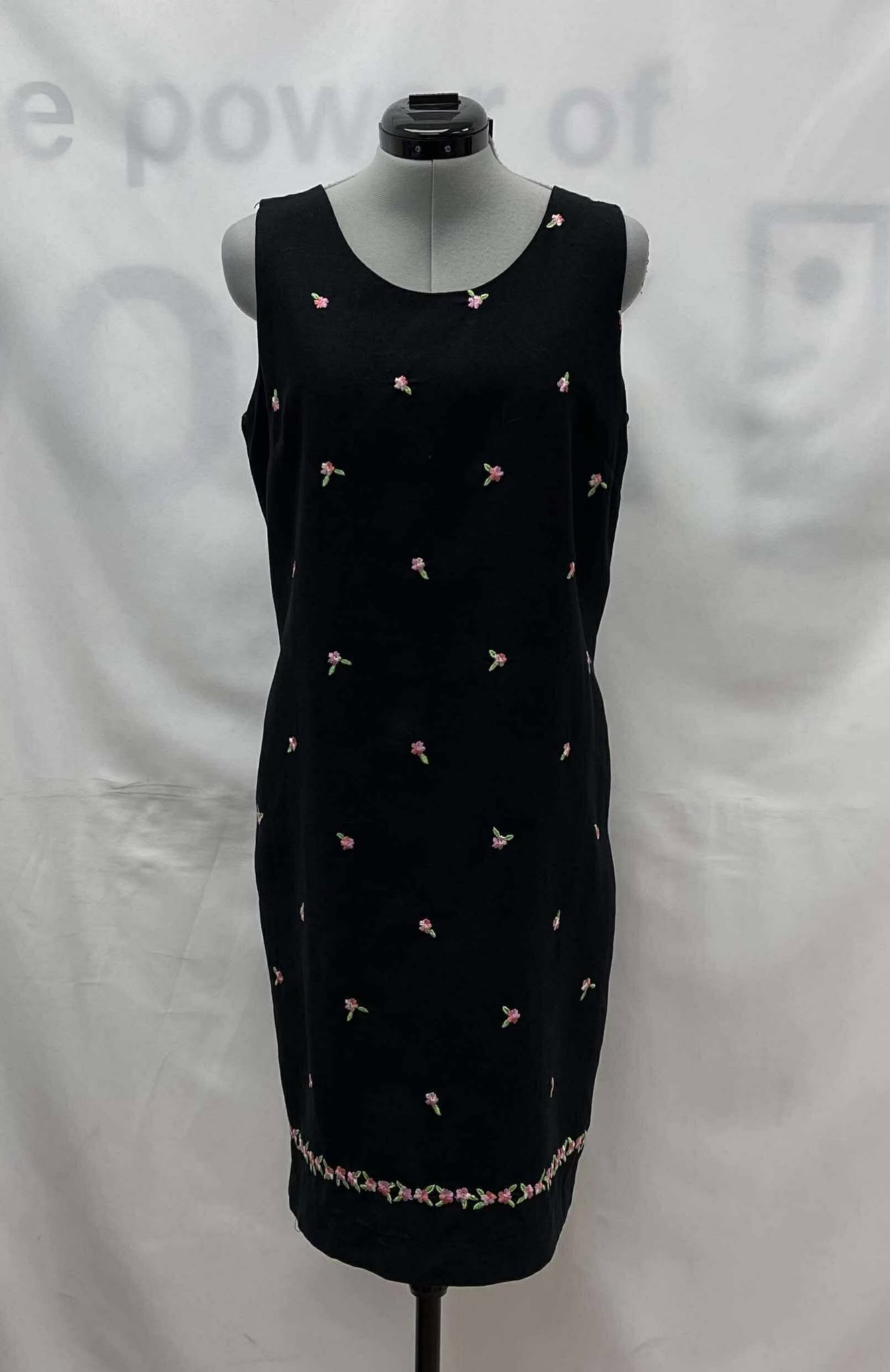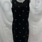 Details: Women’s black with pink floral embroidery, sleeveless Jack Mulqueen dress.?
