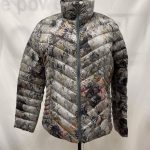 Details: Women’s light grey with multi color pattern Junge “real down” jacket.?