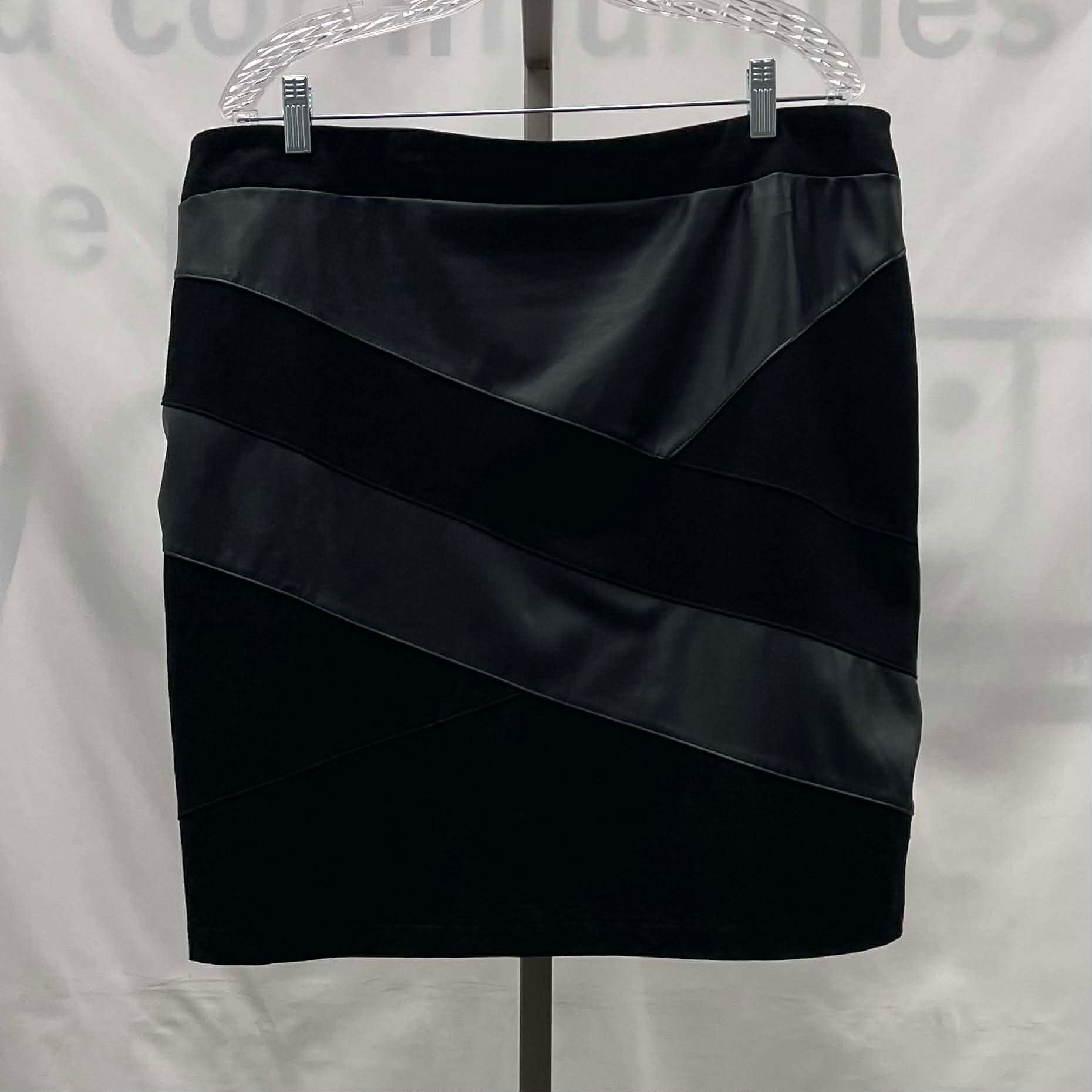 Details: ?Women’s black with black faux leather paneling Laura skirt.