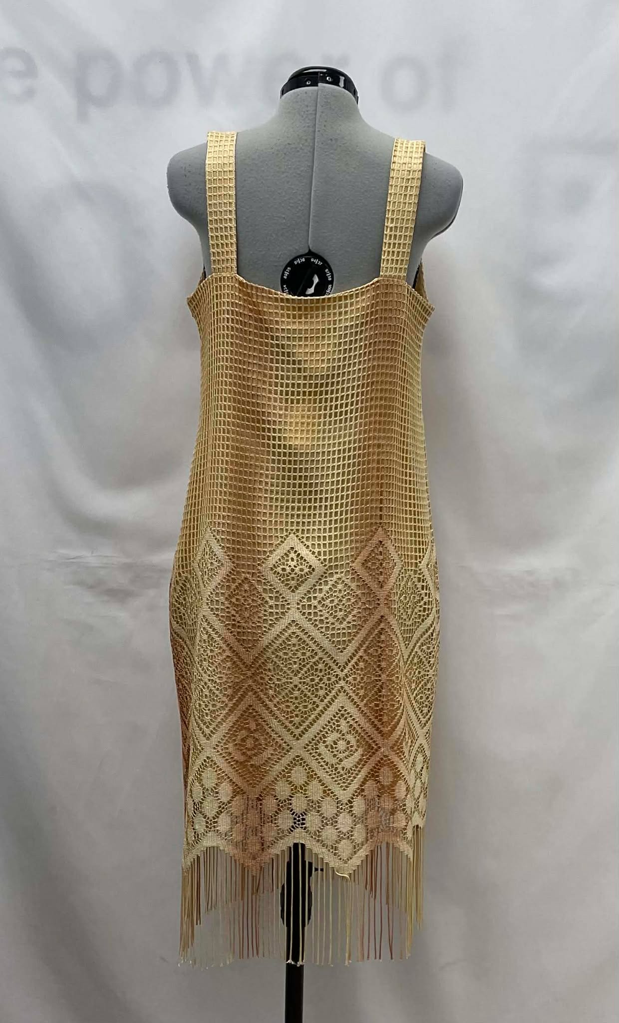 Details: Women’s yellow netted, sleeveless, Lori Weidner dress. ( Worn / As Is )