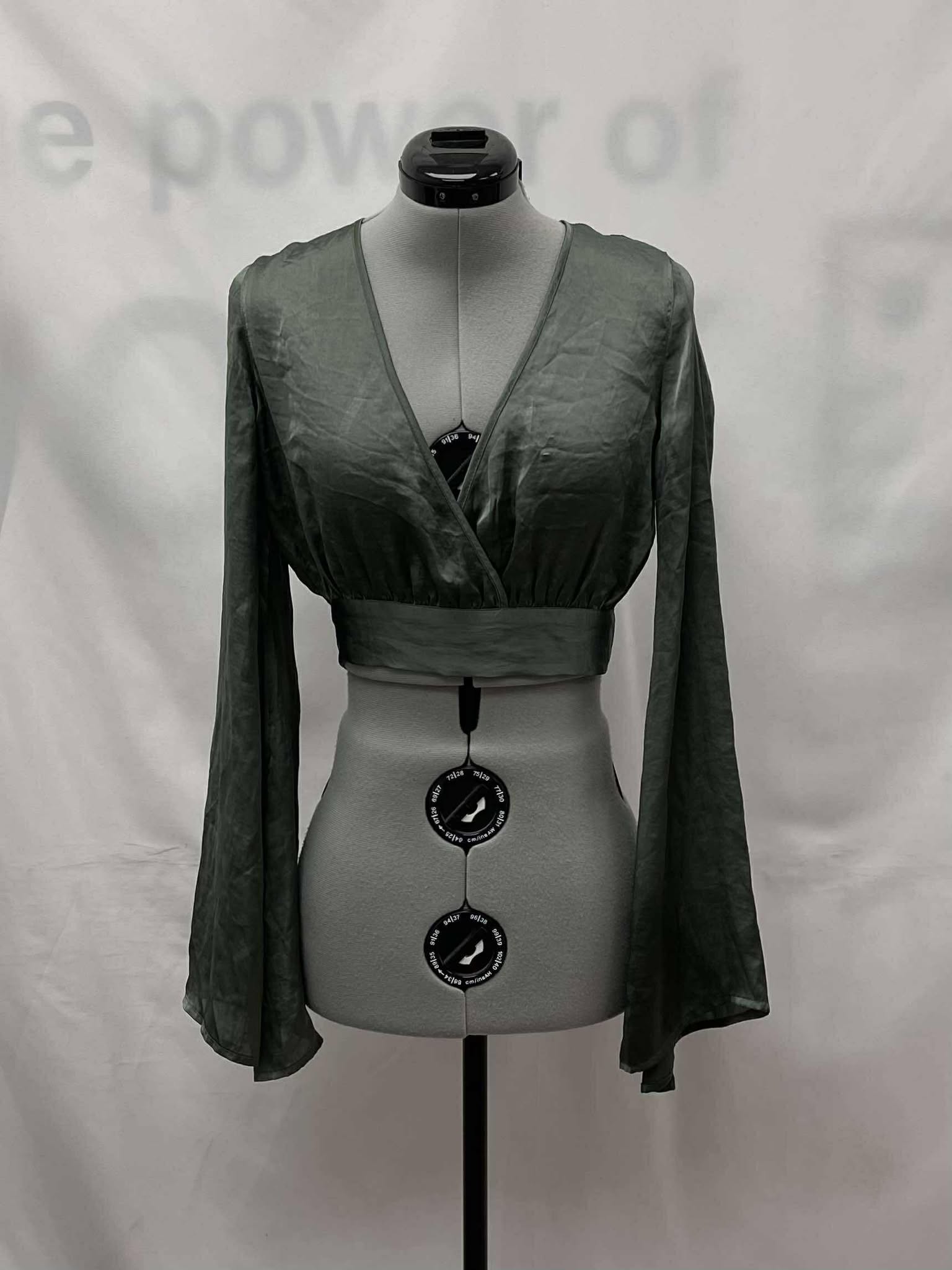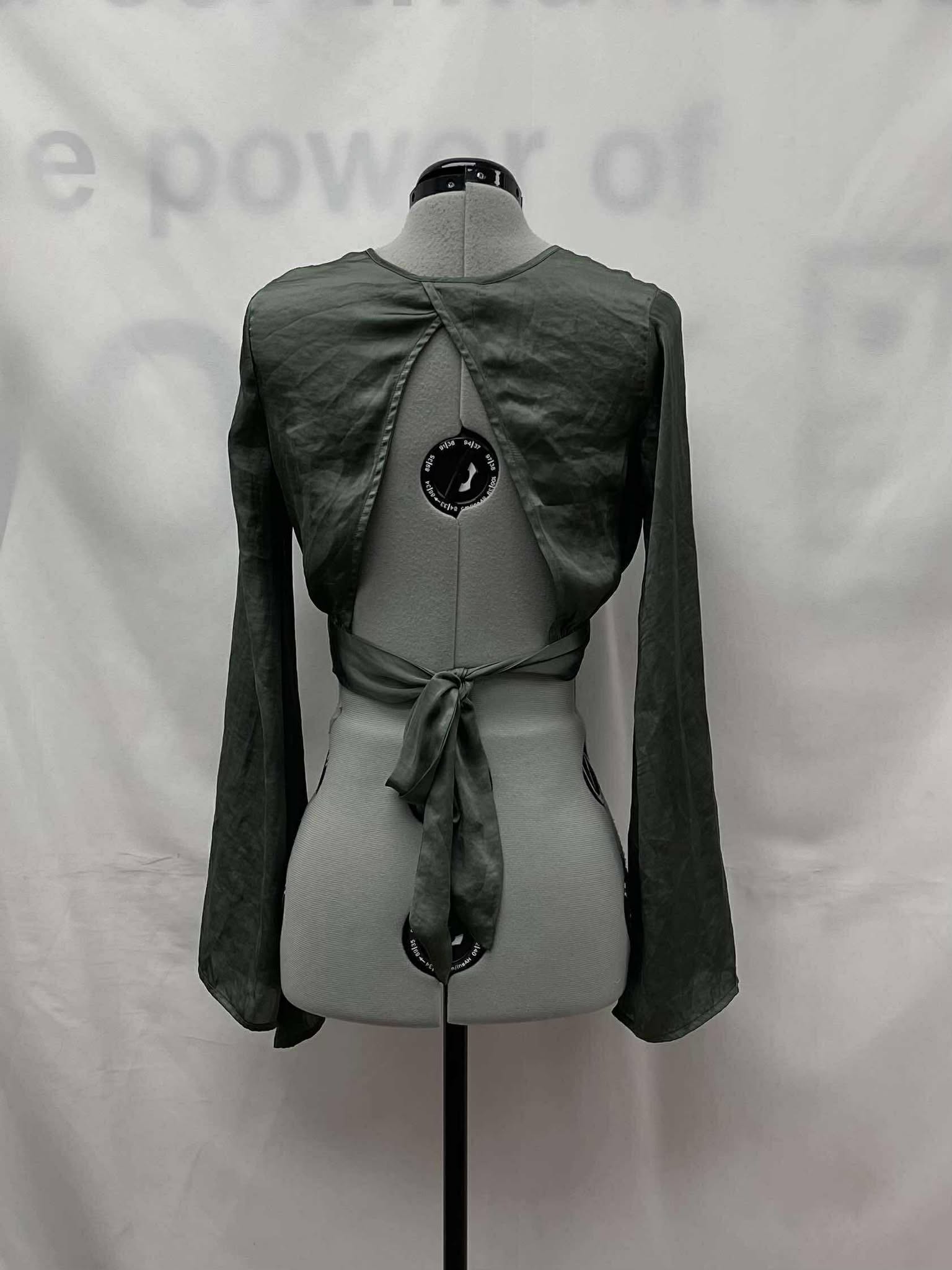 Details: Women’s green, cropped, open back, long sleeve ‘Love Like Summer’ top.