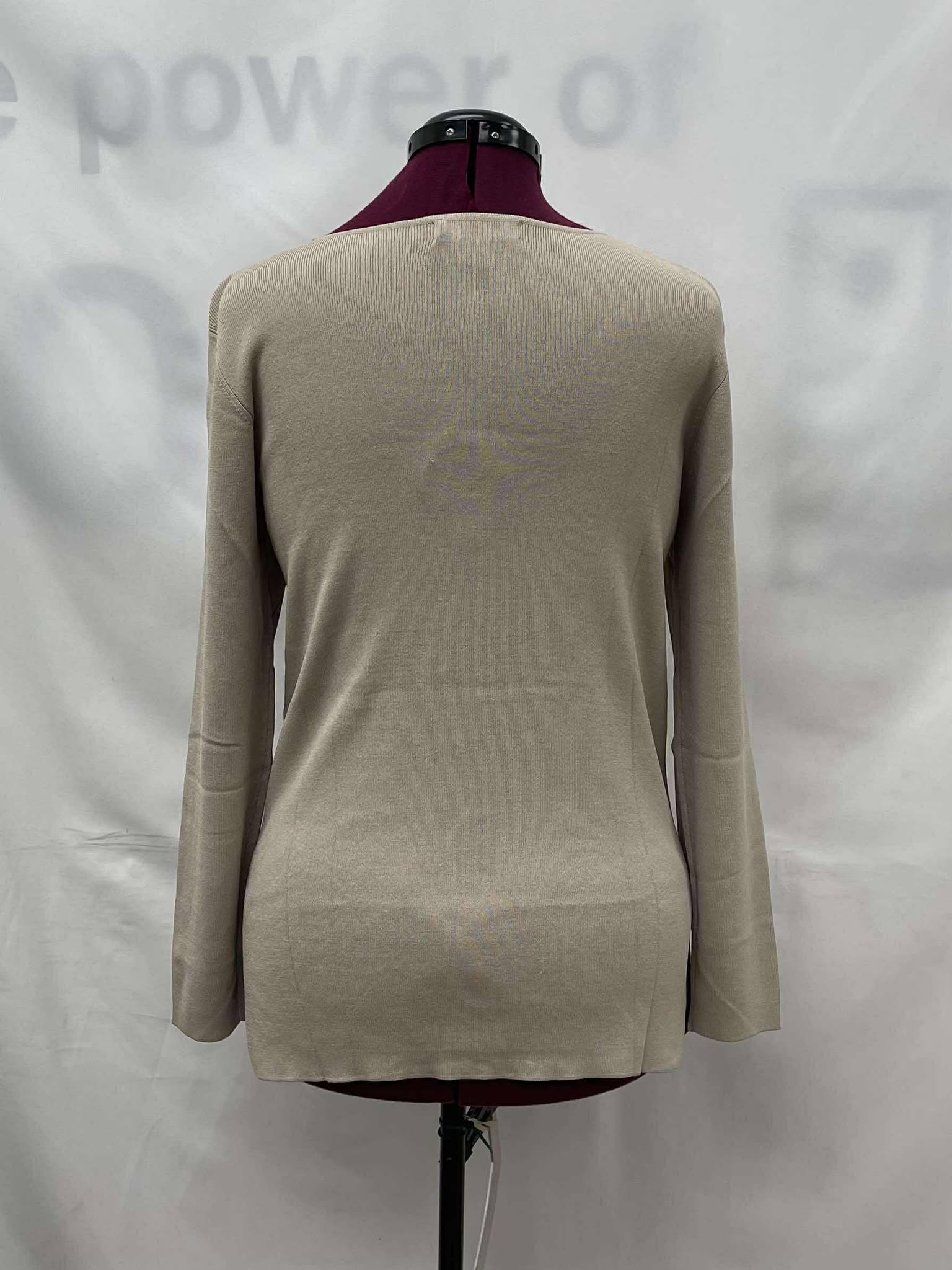 Details: Women’s beige with beaded leaf embroidery, long sleeve Magnolia top.