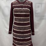 Details: Women’s burgundy with burgundy, light pink, blue and purple lace, beading and velvet ribbon Moiselle dress. ( AS / IS. Not Authenticated.)