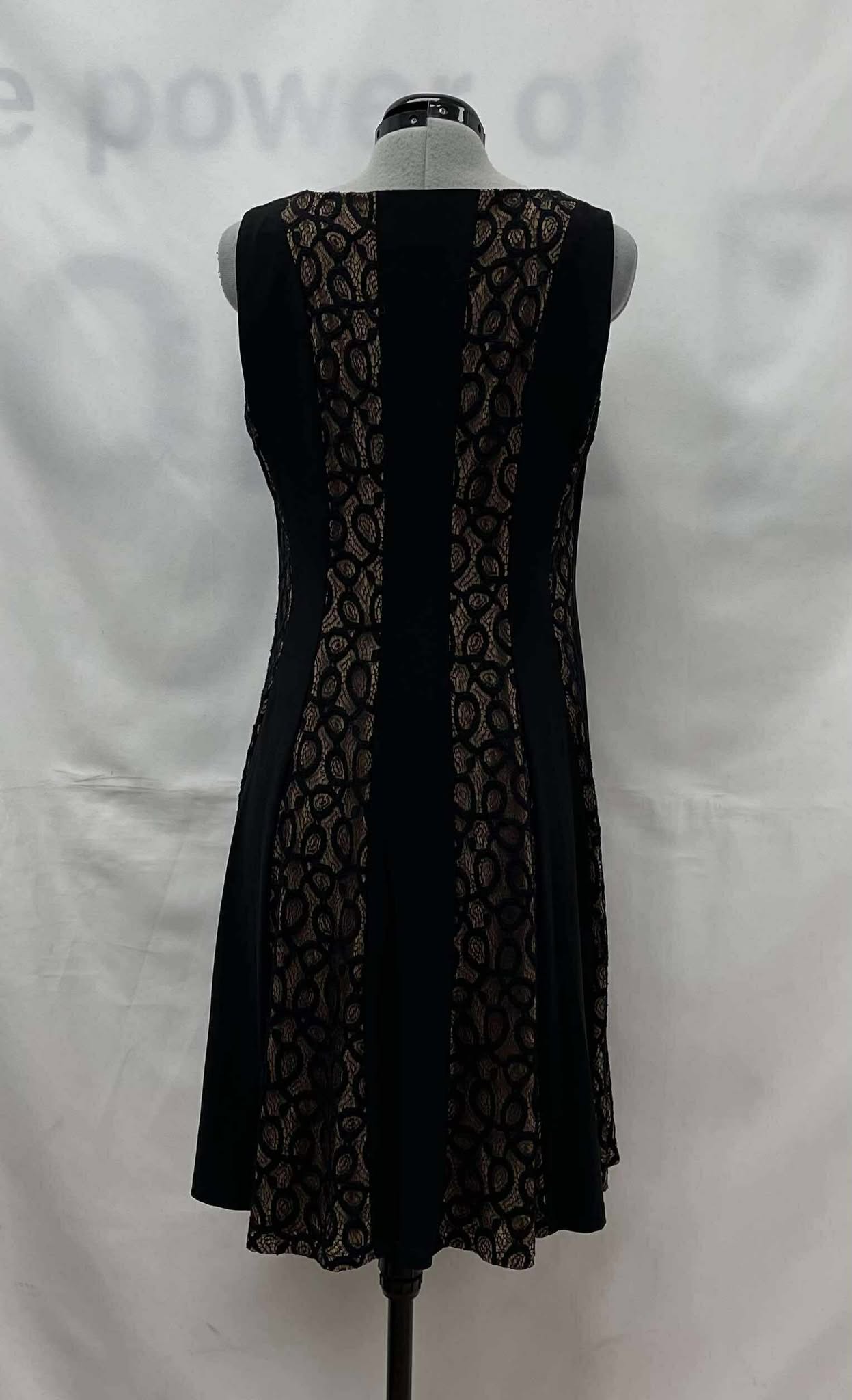 Details: Women’s black embordered outer, with tan lining, sleeveless Nine West dress.