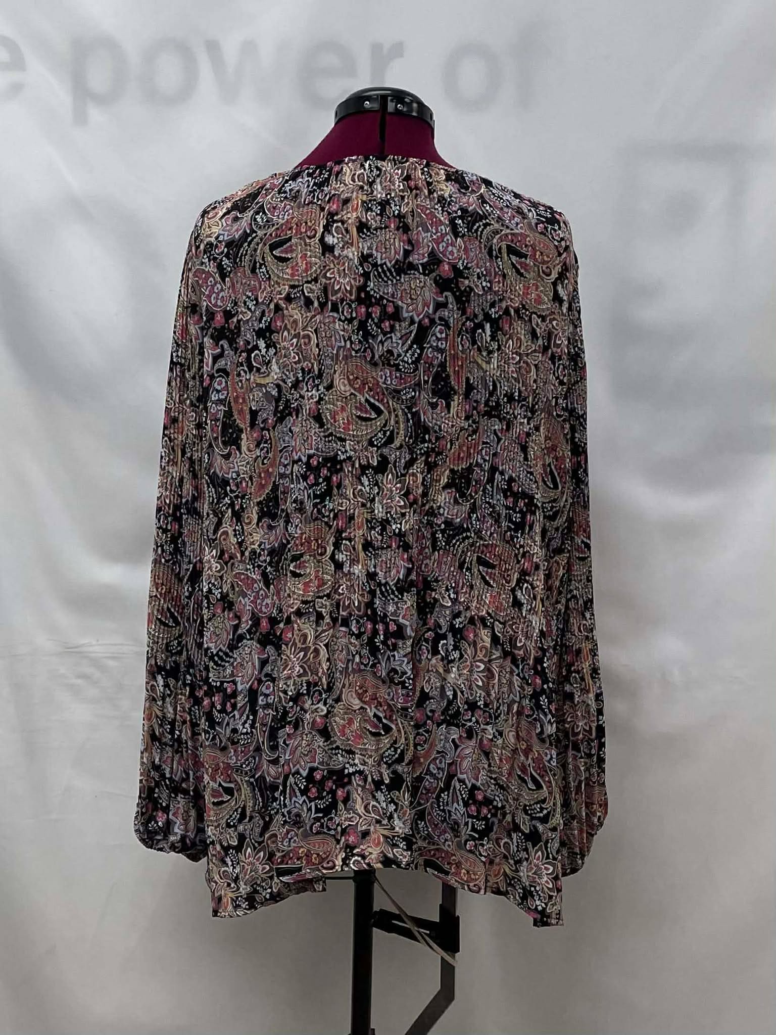 Details: Women’s black with tan and pink patterned, long sleeve Penningtons top.
