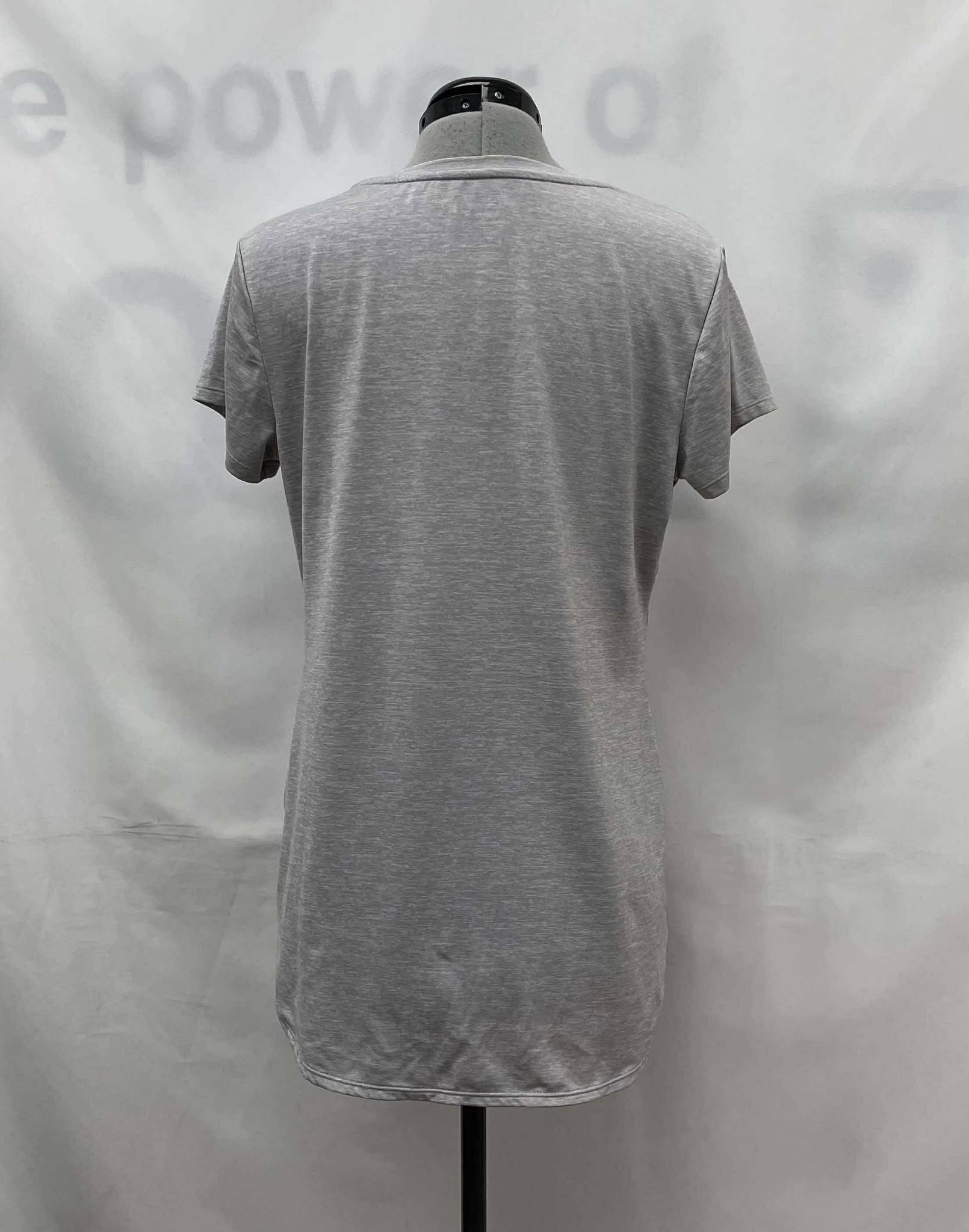 Details: Women’s grey with white lettering, short sleeve Reebok top.??