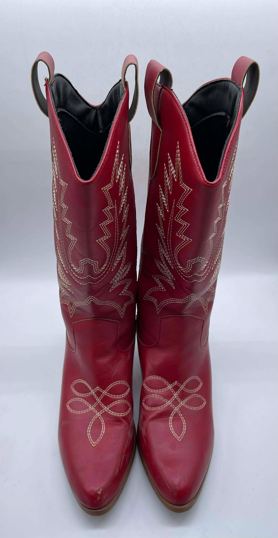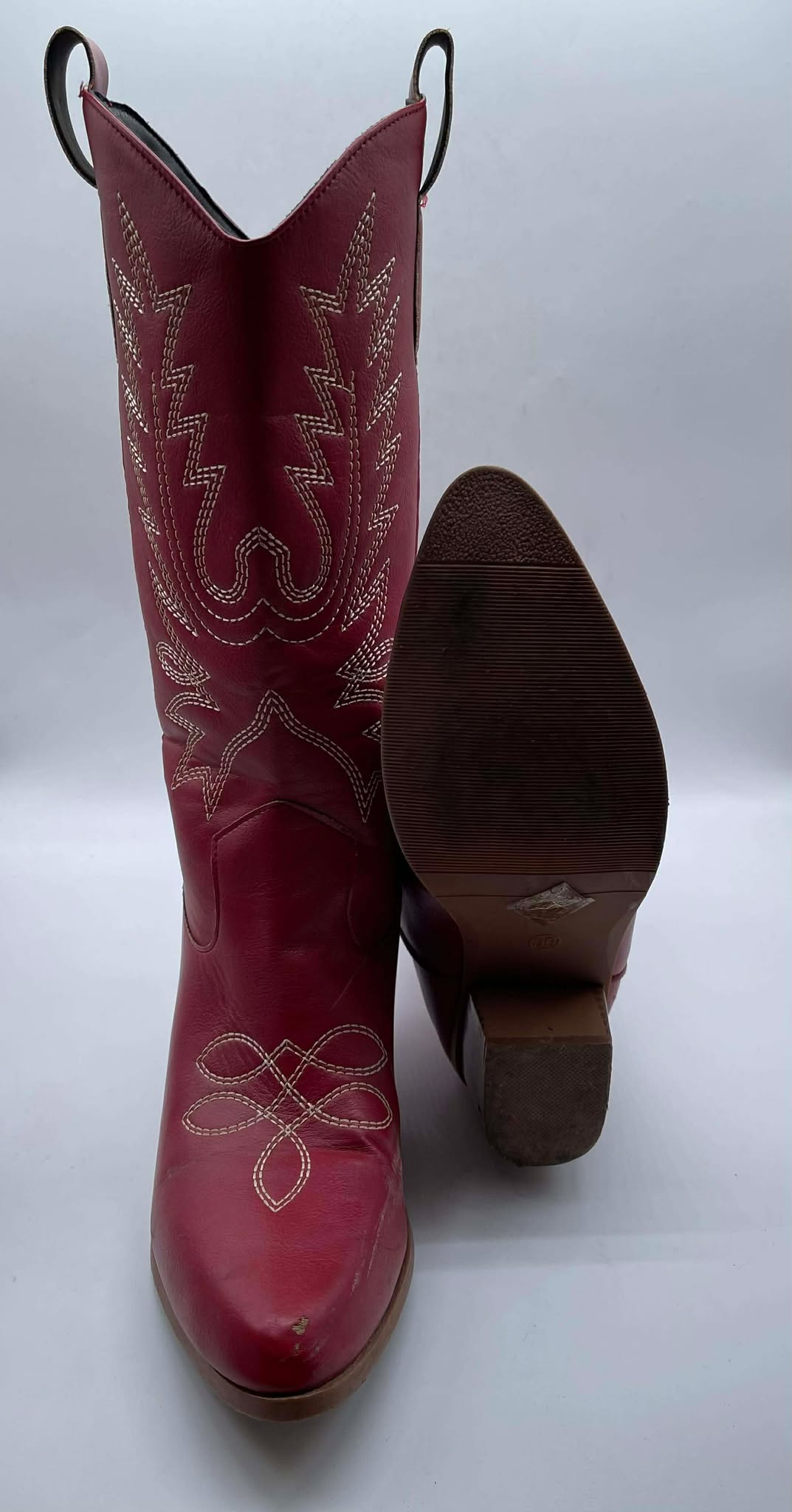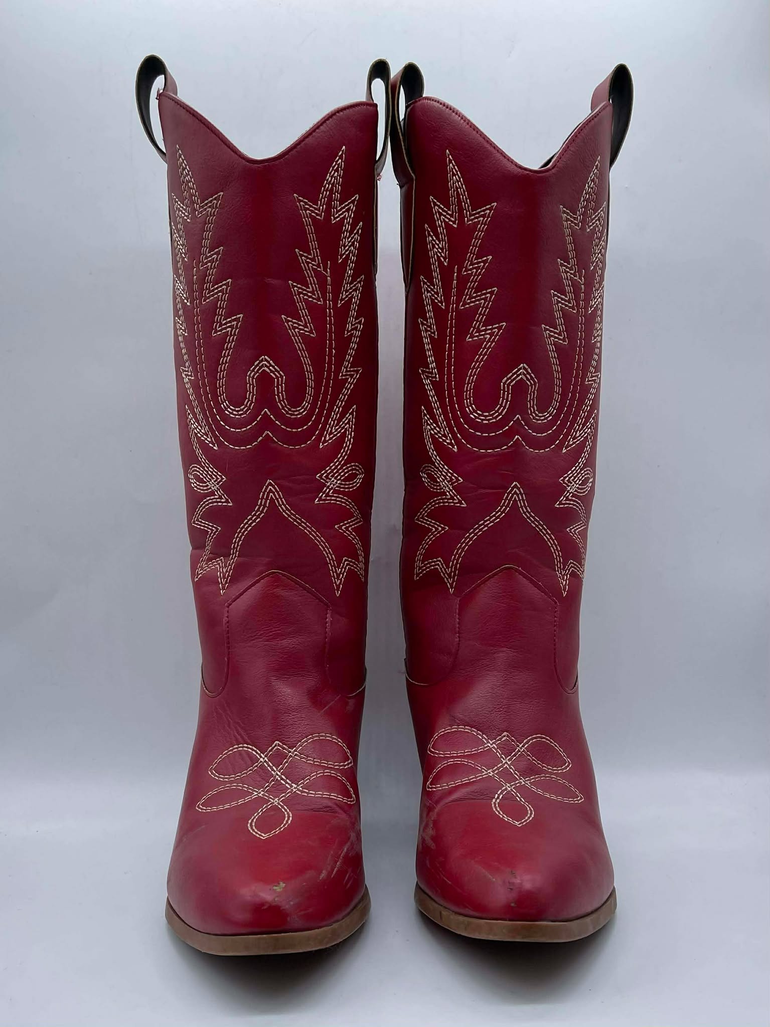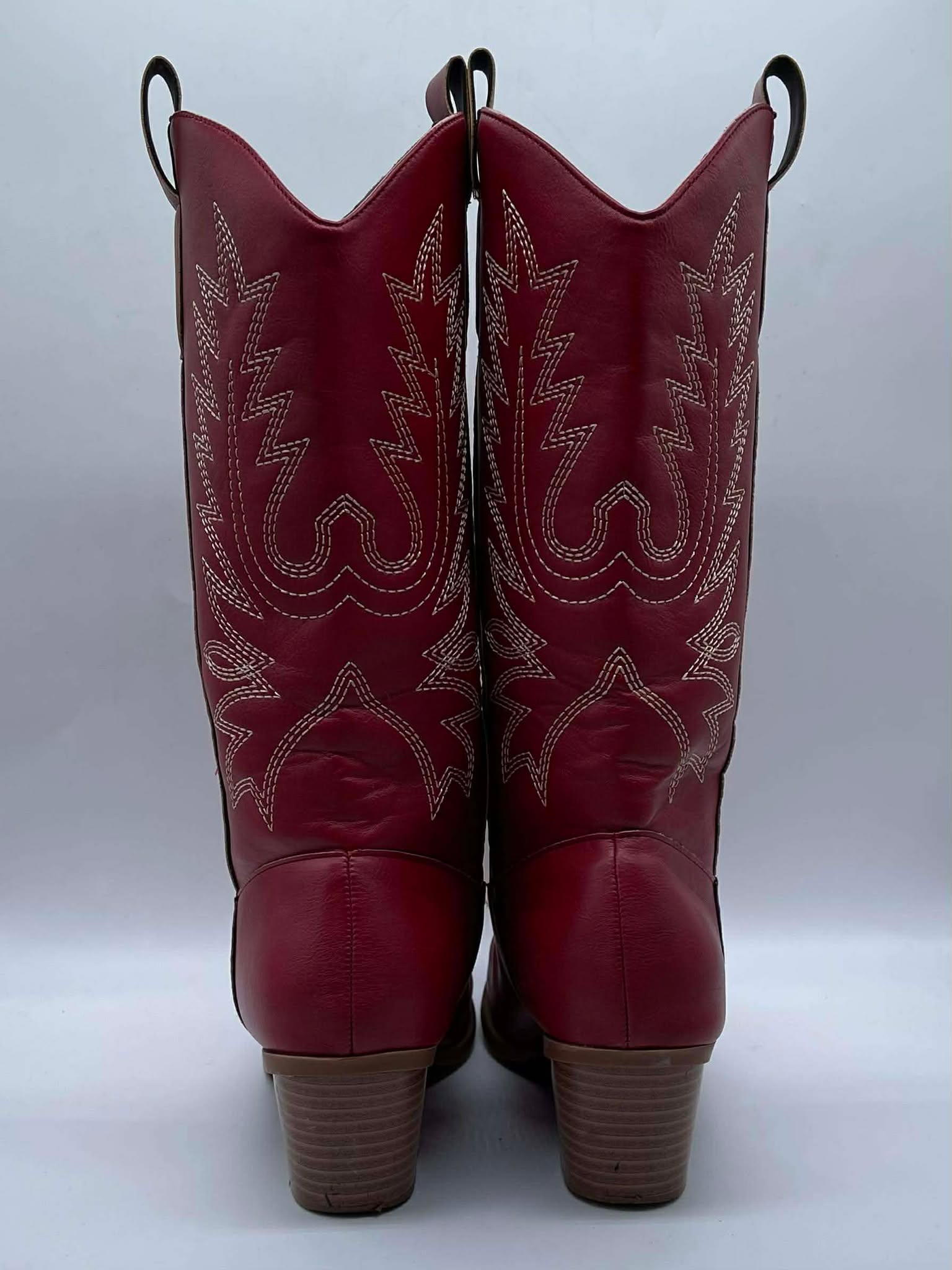 Details: Women’s faux red leather rodeo boots. ( Lightly Worn / As Is )