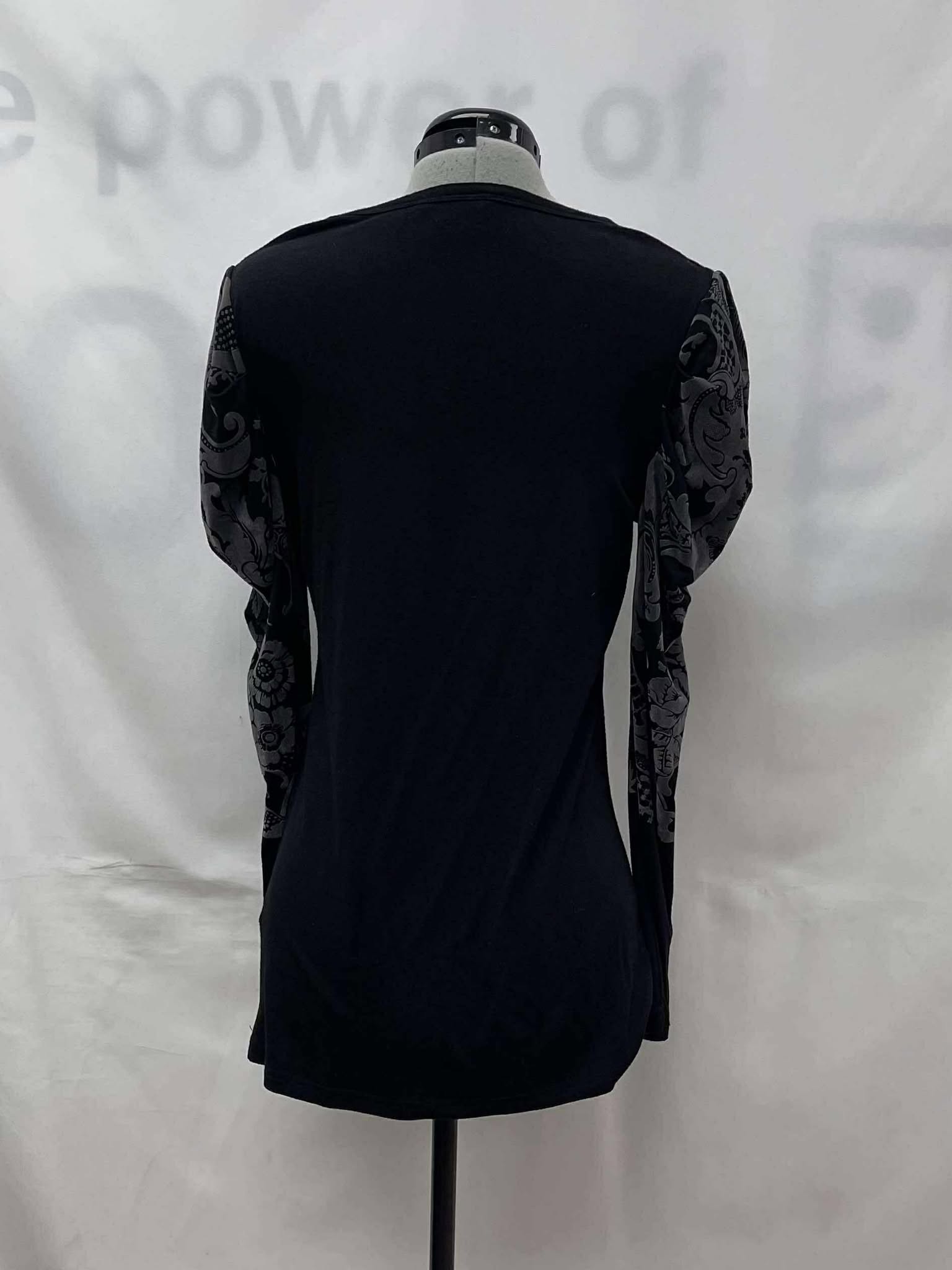 Details: Women’s black with floral patterned long sleeves, Simon Chang top.