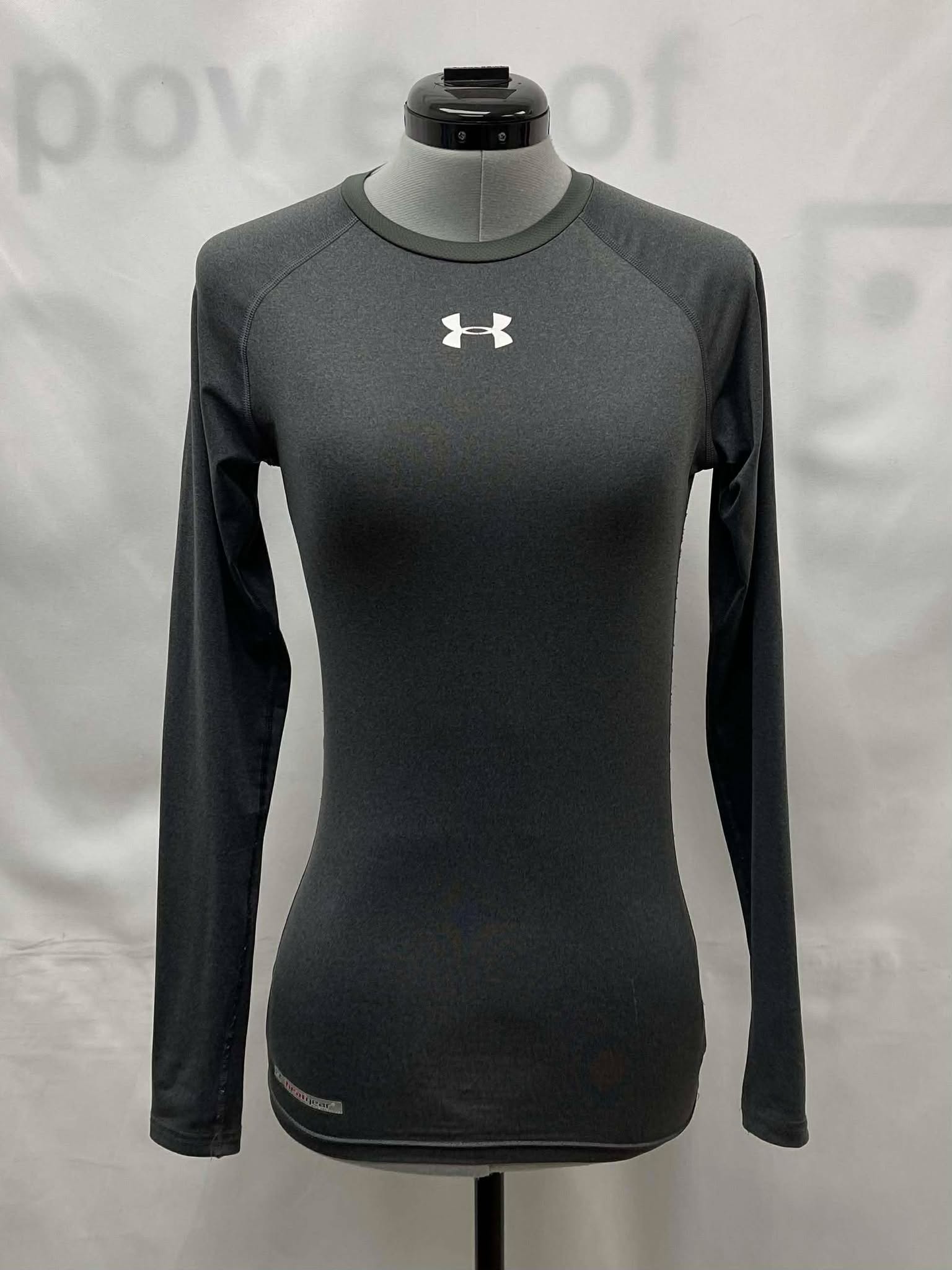 Details: Women’s compression style, dark grey with white logo, long sleeve Under Armour top.?