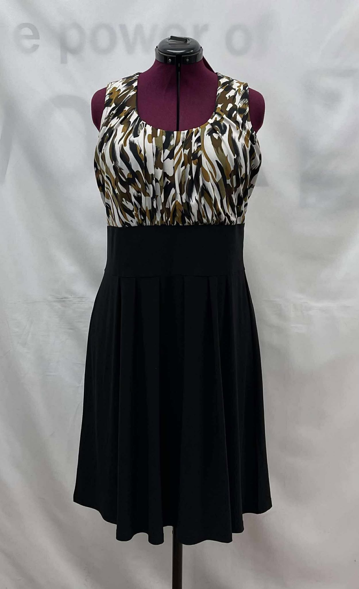 Details: Women’s white with black and brown patterned upper, sleeveless Variations dress.