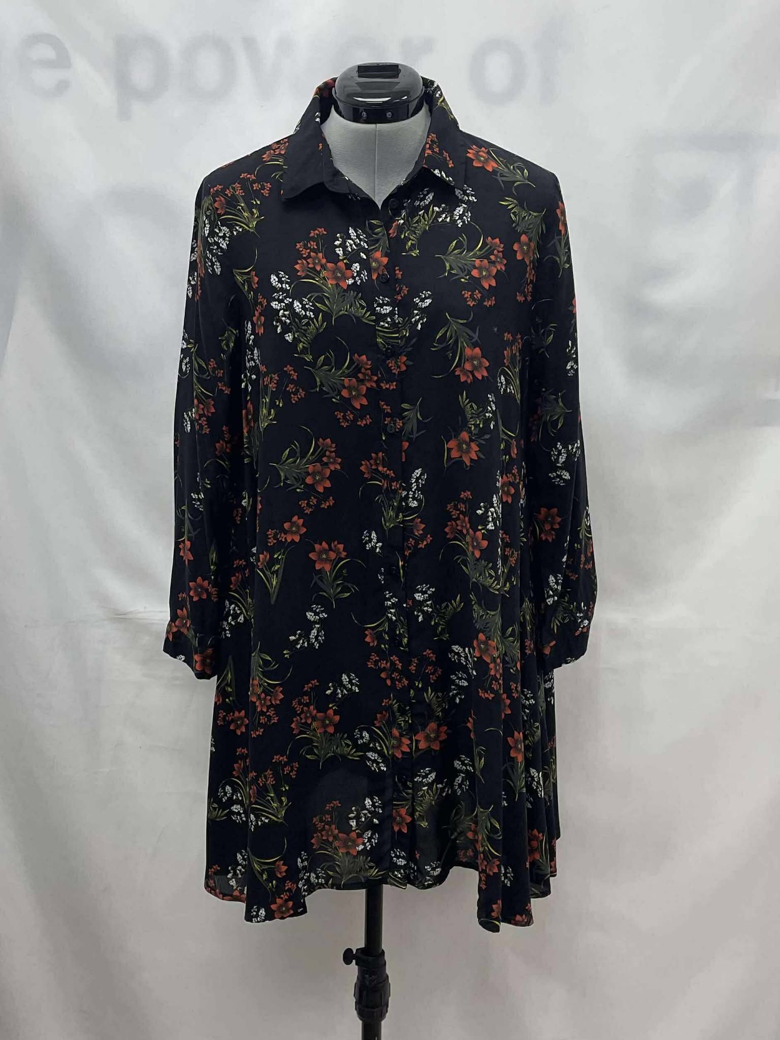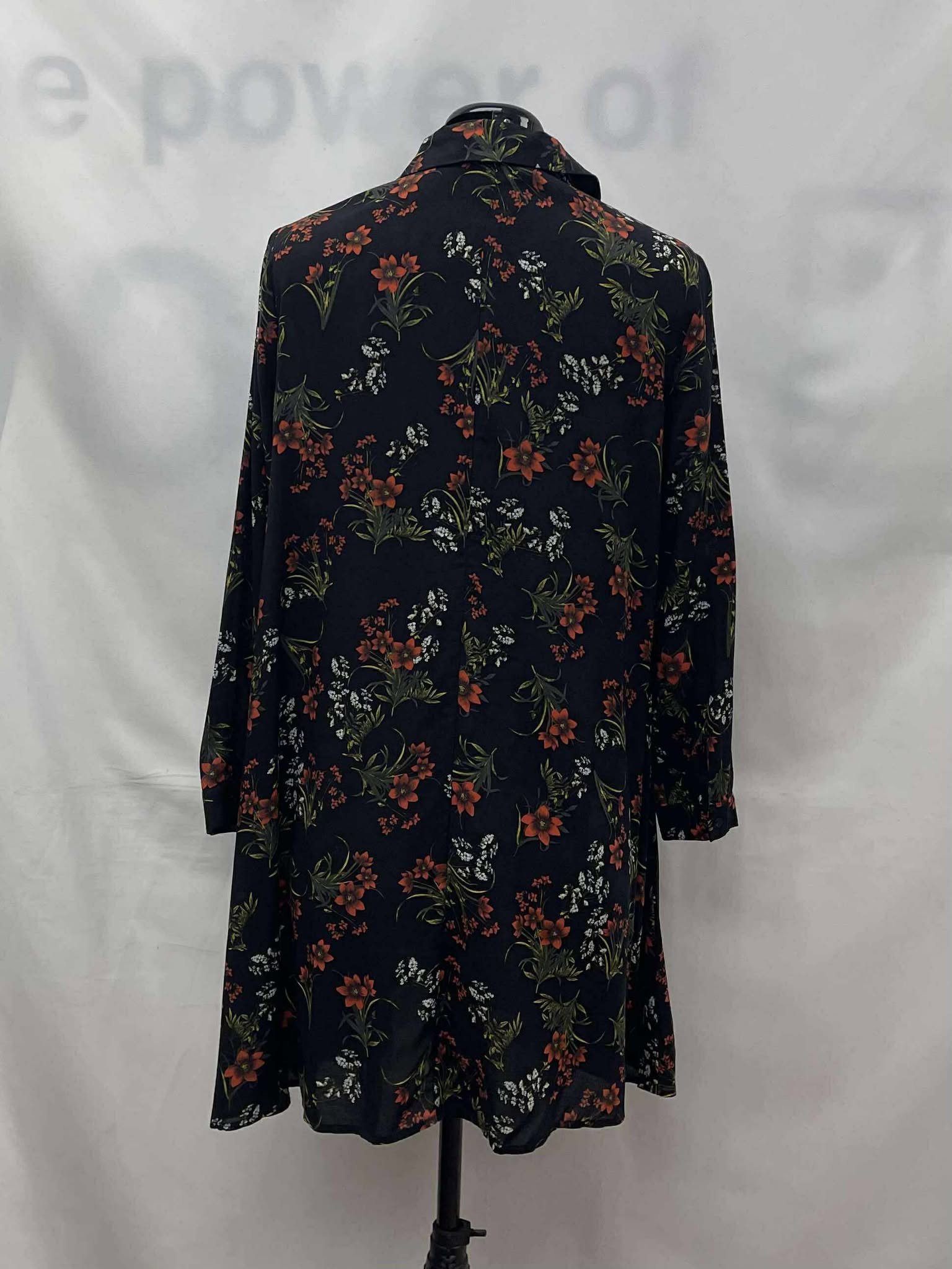 Details: Women’s black with red, white, yellow and green floral print Zara dress,?