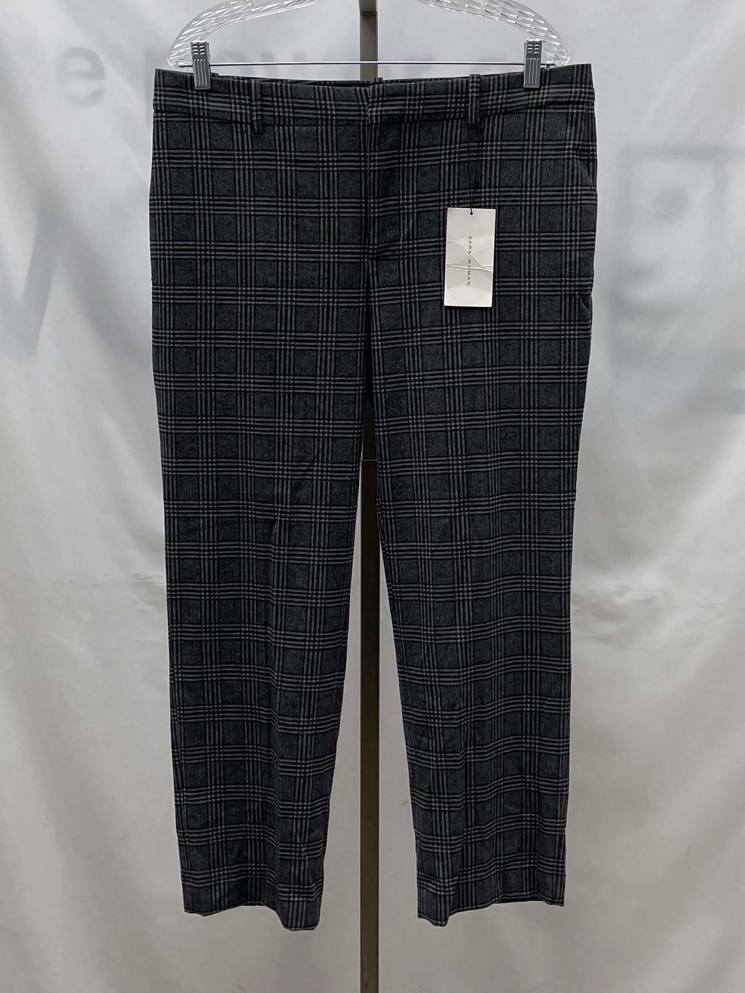 Details: Women’s dark grey and black plaid Zara pants.?