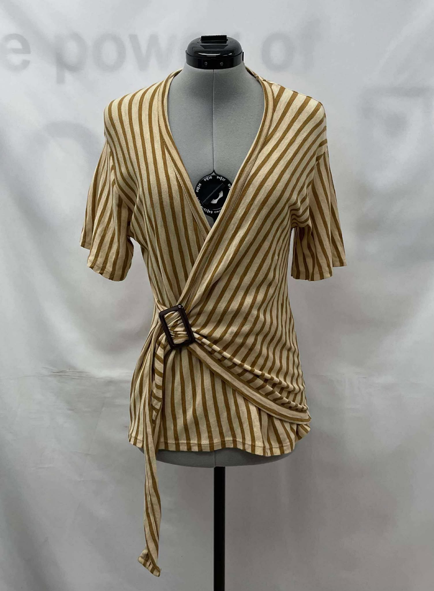 Details: Women’s two tone brown stripped, short sleeve Zara top.