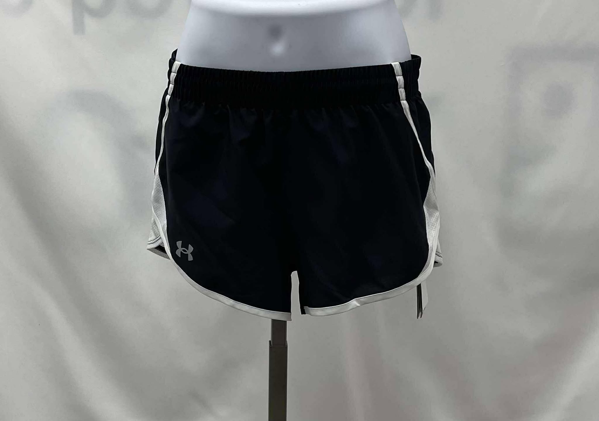 Details: Youth’s black with white trim, Under Armour shorts.